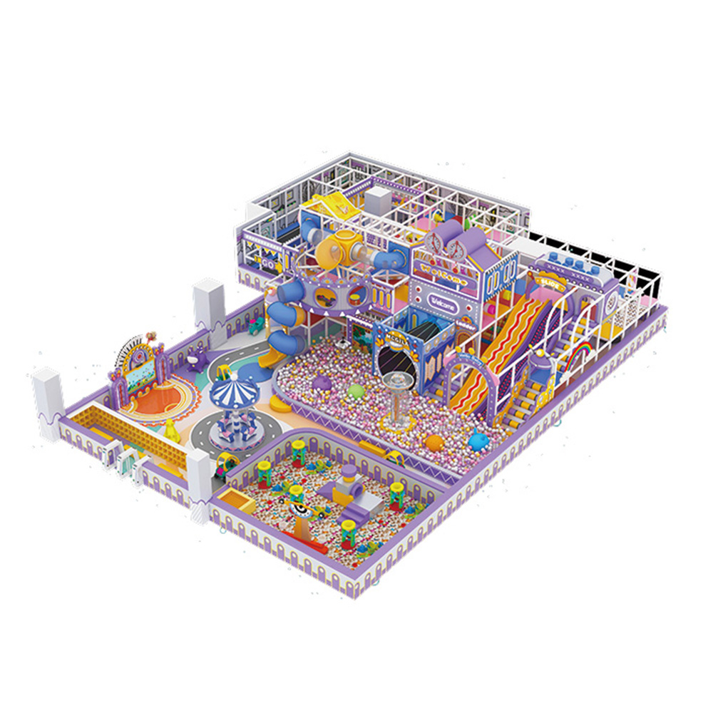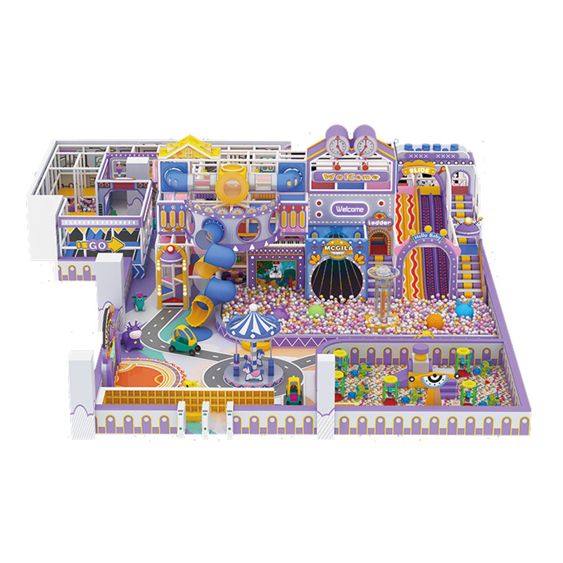Our Purple Star Fantasy Castle Commercial Playground is a premium, immersive themed play structure designed exclusively for commercial family-focused venues. Combining a large ball pit, trampoline zones, a mini carousel, interactive performance stage, and role-play zones, this playground fosters imaginative storytelling, social skill development, and collaborative play for children. Built with child-safe, non-toxic materials and thoughtful safety zoning, it delivers a secure, engaging environment where developmental growth meets endless fun. The eye-catching royal purple fantasy theme makes it a standout feature for venues looking to boost family foot traffic, extend visitor stay time, and increase repeat business.